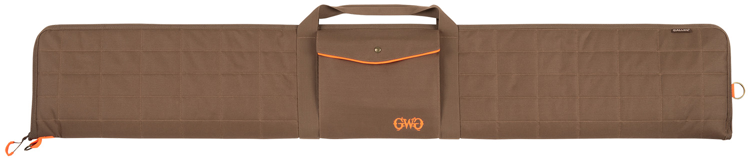 The GWG Highland Shotgun Case is designed to fit shotguns up to 52-inches. The exterior is made of a quilted polyester material finished with brass finish (this is a lot of finish finishes can you rephrase but its brass finish not solid brass) hardware, showcasing the rustic tones within the Highland collection. The exterior side of the case features a front flap pocket with a magnetic closure to easily access small accessories. Offering ample protection, the firearm case is lined with a plush foam padding to protect your firearm from dings or scratches. The lockable zipper provides additional safety options to ensure your firearm remains safe during transit or when storing.