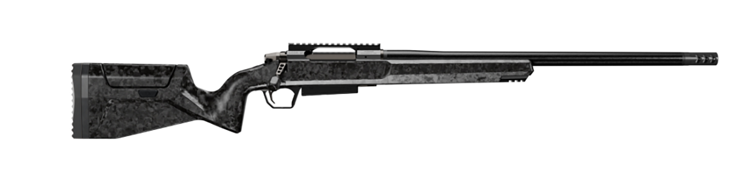 The Modern Carbon rifle constructed using the latest in aerospace technology and premium components is a celebration of Christensen Arms’ legacy of carbon fiber innovation. Features a lightweight FFT carbon fiber stock with an adjustable push-button FFT cheek riser and adjustable length of pull via spacers; full-length M-LOK on the forearm; front and rear QD attachment points; integrated forward Picatinny rail section; Remington 700 style action is topped with an optic-ready 20-MOA Picatinny rail; skeletonized bolt handle with an FFT carbon fiber bolt knob; suppressor ready threaded muzzle equipped with a premium side baffle brake; hybrid grip; TriggerTech adjustable trigger; free-floating, hand lapped, button rifled Christensen Arms Aerograde carbon fiber barrel with a Match chamber.
