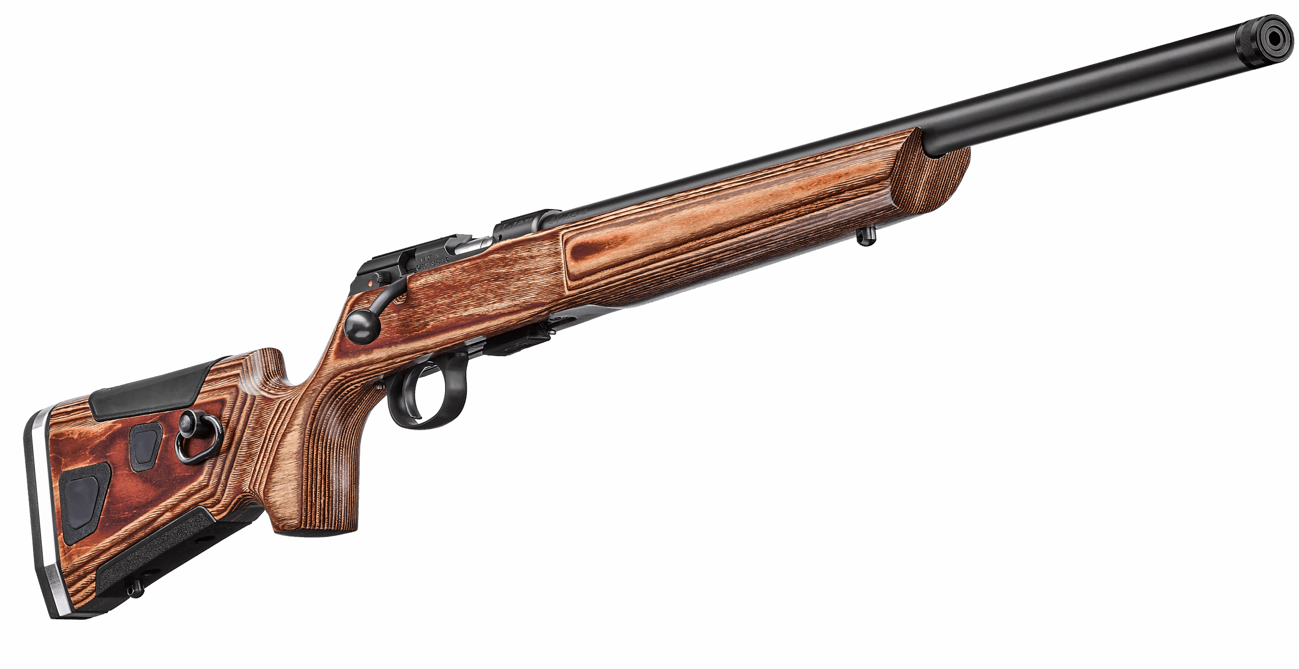 Using the popular Boyds AT-ONE stock as its basis, this 457 Varmint variant makes an ideal trainer. With the push of a button, length of pull can be adjusted from 12.5″ to 14.25″. Comb height is similarly adjustable, with 5/8″ of rise available. The stiff laminate stock provides a nice, rigid platform to work and the threaded heavy barrel makes fitting a suppressor easy. In addition to the receiver-mounted, push-to-fire safety, we chopped almost an inch of length from the action and slab-sided it to reduce its footprint and weight. With the exact same swappable barrel system as the 455 and the same reliable polymer magazine system, the 457 is without a doubt the best rimfire platform we’ve ever fielded.