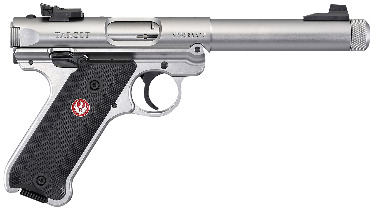 Ruger 40126 Mark IV Target 22 LR 10+1 5.50″ Satin Threaded Bull Barrel, Drilled & Tapped Receiver, Satin Stainless Steel Frame, Black Checkered Polymer Grip, Right Hand